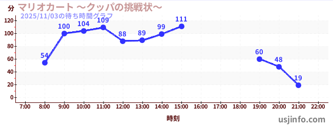 • マリオカート ~クッパの挑戦状~$B$N(B2025年11月03日の待ち時間