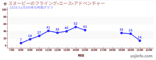 • スヌーピーのフライング•エース•アドベンチャー$B$N(B2025年11月03日の待ち時間