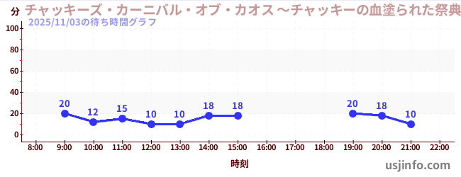 • チャッキーズ・カーニバル・オブ・カオス ~チャッキーの血塗られた祭典~$B$N(B2025年11月03日の待ち時間