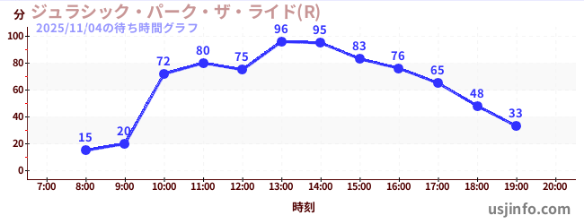 • ジュラシック・パーク・ザ・ライド(R)$B$N(B2025年11月04日の待ち時間