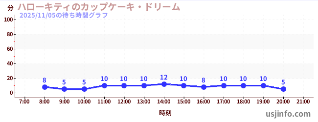 • ハローキティのカップケーキ・ドリーム$B$N(B2025年11月05日の待ち時間