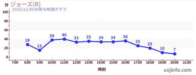 • ジョーズ(R)$B$N(B2025年11月05日の待ち時間