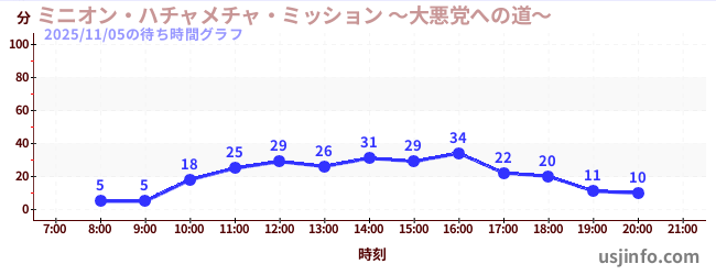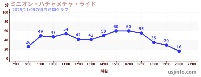 • ミニオン・ハチャメチャ・ライド$B$N(B2025年11月05日の待ち時間