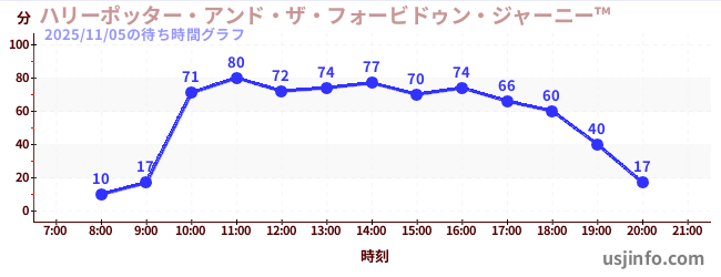 • ハリーポッター・アンド・ザ・フォービドゥン・ジャーニー™$B$N(B2025年11月05日の待ち時間