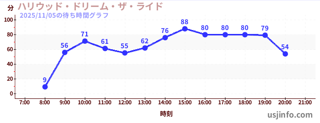 • ハリウッド・ドリーム・ザ・ライド$B$N(B2025年11月05日の待ち時間