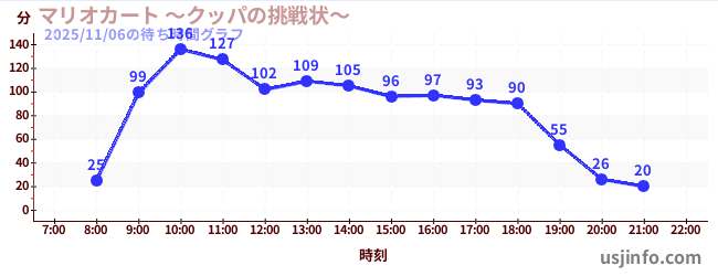 • マリオカート ~クッパの挑戦状~$B$N(B2025年11月06日の待ち時間
