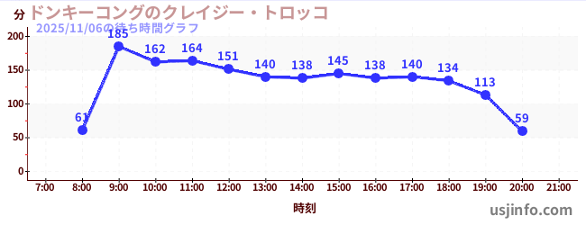 • ドンキーコングのクレイジー・トロッコ$B$N(B2025年11月06日の待ち時間