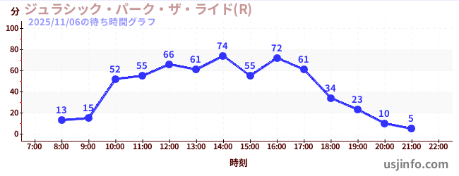 • ジュラシック・パーク・ザ・ライド(R)$B$N(B2025年11月06日の待ち時間