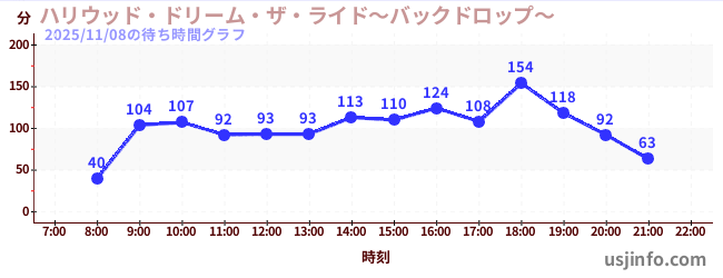• ハリウッド・ドリーム・ザ・ライド〜バックドロップ〜$B$N(B2025年11月08日の待ち時間