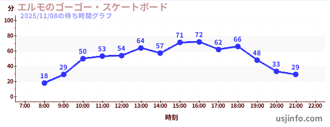 • エルモのゴーゴー・スケートボード$B$N(B2025年11月08日の待ち時間