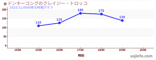 • ドンキーコングのクレイジー・トロッコ$B$N(B2025年11月09日の待ち時間
