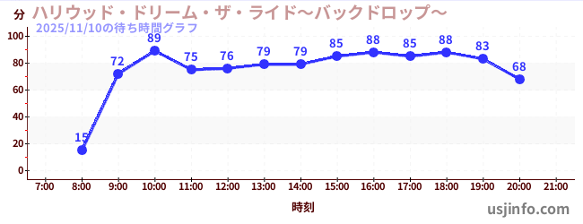 • ハリウッド・ドリーム・ザ・ライド〜バックドロップ〜$B$N(B2025年11月10日の待ち時間