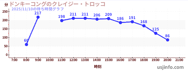 • ドンキーコングのクレイジー・トロッコ$B$N(B2025年11月10日の待ち時間