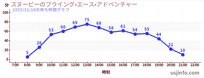• スヌーピーのフライング•エース•アドベンチャー$B$N(B2025年11月10日の待ち時間