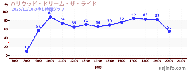 • ハリウッド・ドリーム・ザ・ライド$B$N(B2025年11月10日の待ち時間
