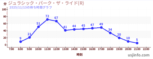 • ジュラシック・パーク・ザ・ライド(R)$B$N(B2025年11月13日の待ち時間