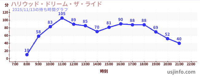 • ハリウッド・ドリーム・ザ・ライド$B$N(B2025年11月13日の待ち時間