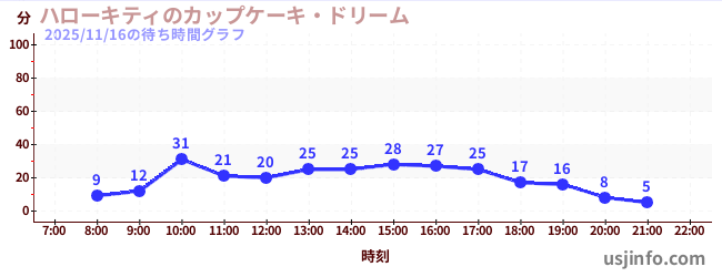 • ハローキティのカップケーキ・ドリーム$B$N(B2025年11月16日の待ち時間
