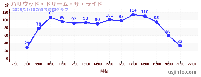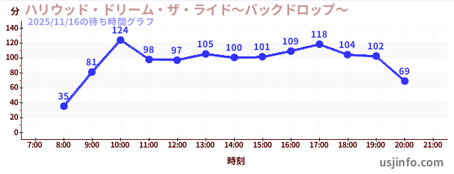 • ハリウッド・ドリーム・ザ・ライド〜バックドロップ〜$B$N(B2025年11月16日の待ち時間