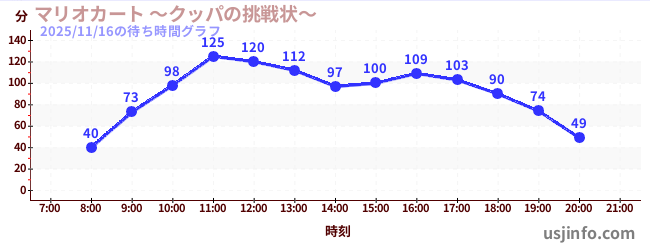 • マリオカート ~クッパの挑戦状~$B$N(B2025年11月16日の待ち時間