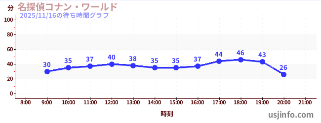 • 名探偵コナン・ワールド$B$N(B2025年11月16日の待ち時間