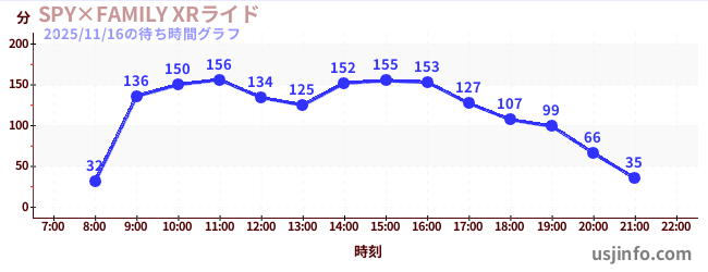 • SPY×FAMILY XRライド$B$N(B2025年11月16日の待ち時間