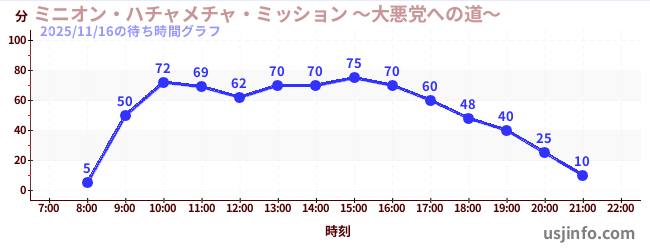 • ミニオン・ハチャメチャ・ミッション ~大悪党への道~$B$N(B2025年11月16日の待ち時間