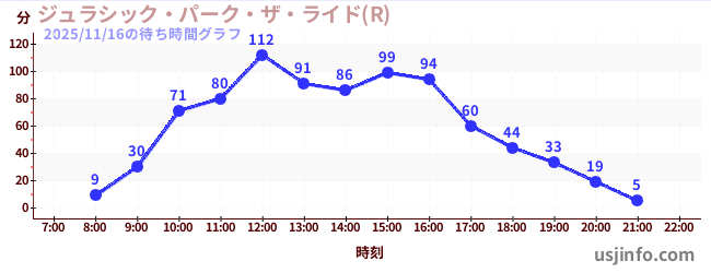 • ジュラシック・パーク・ザ・ライド(R)$B$N(B2025年11月16日の待ち時間