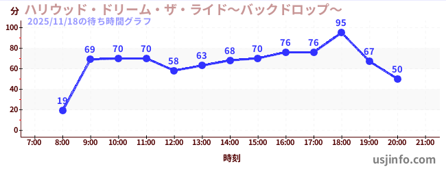 • ハリウッド・ドリーム・ザ・ライド〜バックドロップ〜$B$N(B2025年11月18日の待ち時間