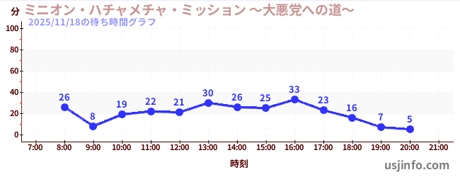 • ミニオン・ハチャメチャ・ミッション ~大悪党への道~$B$N(B2025年11月18日の待ち時間