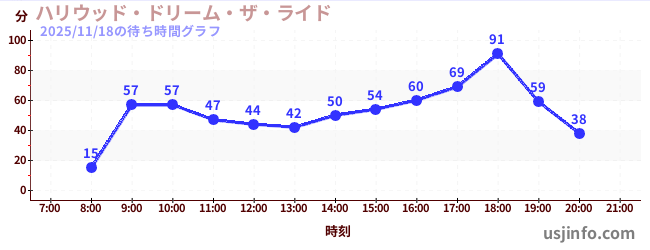 • ハリウッド・ドリーム・ザ・ライド$B$N(B2025年11月18日の待ち時間