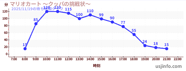 • マリオカート ~クッパの挑戦状~$B$N(B2025年11月19日の待ち時間