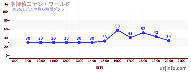 • 名探偵コナン・ワールド$B$N(B2025年11月19日の待ち時間