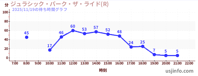 • ジュラシック・パーク・ザ・ライド(R)$B$N(B2025年11月19日の待ち時間