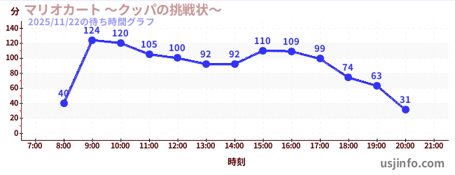 • マリオカート ~クッパの挑戦状~$B$N(B2025年11月22日の待ち時間