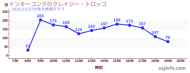 • ドンキーコングのクレイジー・トロッコ$B$N(B2025年11月27日の待ち時間