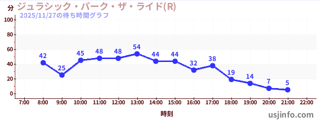 • ジュラシック・パーク・ザ・ライド(R)$B$N(B2025年11月27日の待ち時間