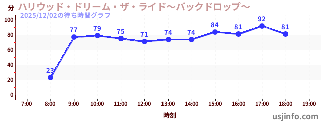 • ハリウッド・ドリーム・ザ・ライド〜バックドロップ〜$B$N(B2025年12月02日の待ち時間