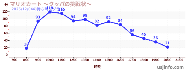 • マリオカート ~クッパの挑戦状~$B$N(B2025年12月04日の待ち時間