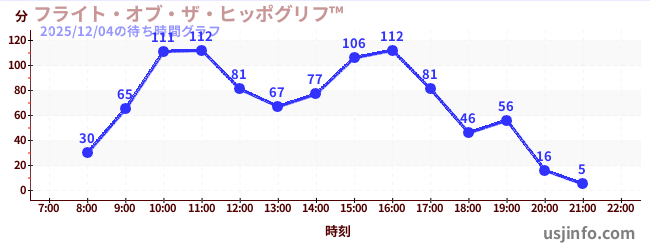 • フライト・オブ・ザ・ヒッポグリフ™$B$N(B2025年12月04日の待ち時間
