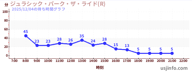 • ジュラシック・パーク・ザ・ライド(R)$B$N(B2025年12月04日の待ち時間