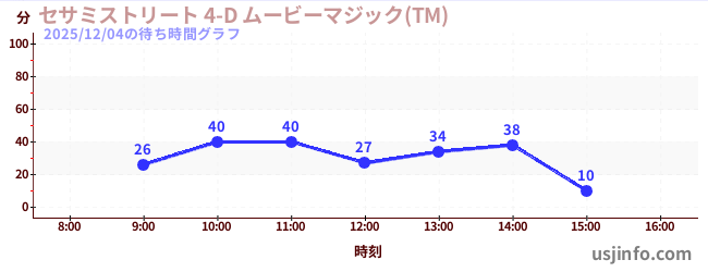 • セサミストリート 4-D ムービーマジック(TM)$B$N(B2025年12月04日の待ち時間