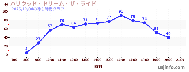 • ハリウッド・ドリーム・ザ・ライド$B$N(B2025年12月04日の待ち時間