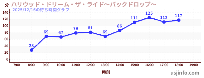• ハリウッド・ドリーム・ザ・ライド〜バックドロップ〜$B$N(B2025年12月16日の待ち時間