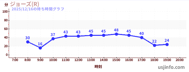 • ジョーズ(R)$B$N(B2025年12月16日の待ち時間