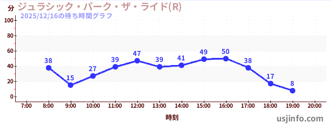 • ジュラシック・パーク・ザ・ライド(R)$B$N(B2025年12月16日の待ち時間