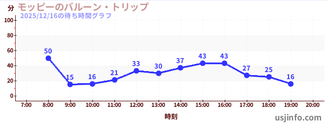 • ミニオン・ハチャメチャ・ライド$B$N(B2025年12月16日の待ち時間