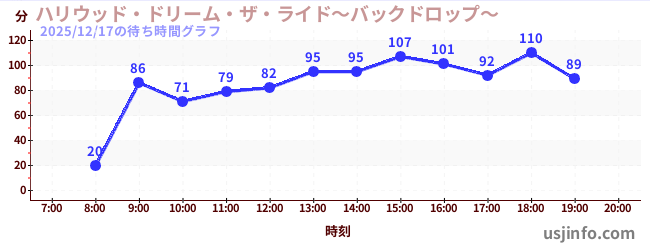 • ハリウッド・ドリーム・ザ・ライド〜バックドロップ〜$B$N(B2025年12月17日の待ち時間