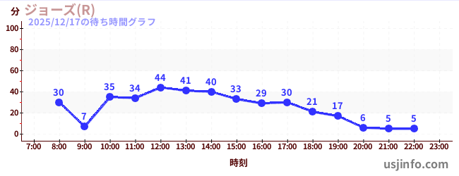 • ジョーズ(R)$B$N(B2025年12月17日の待ち時間