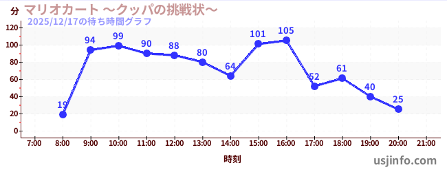 • マリオカート ~クッパの挑戦状~$B$N(B2025年12月17日の待ち時間